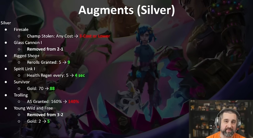 | Silver Augments | Firesale | Champ stolen: Any cost → 3-cost or lower. |