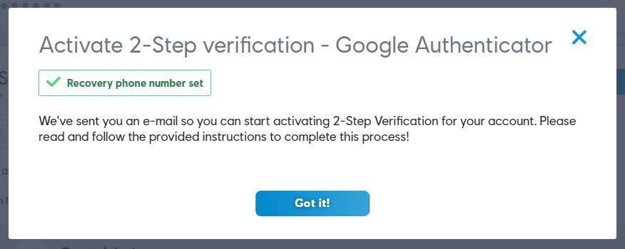 - Click activate in the two-factor authentication section