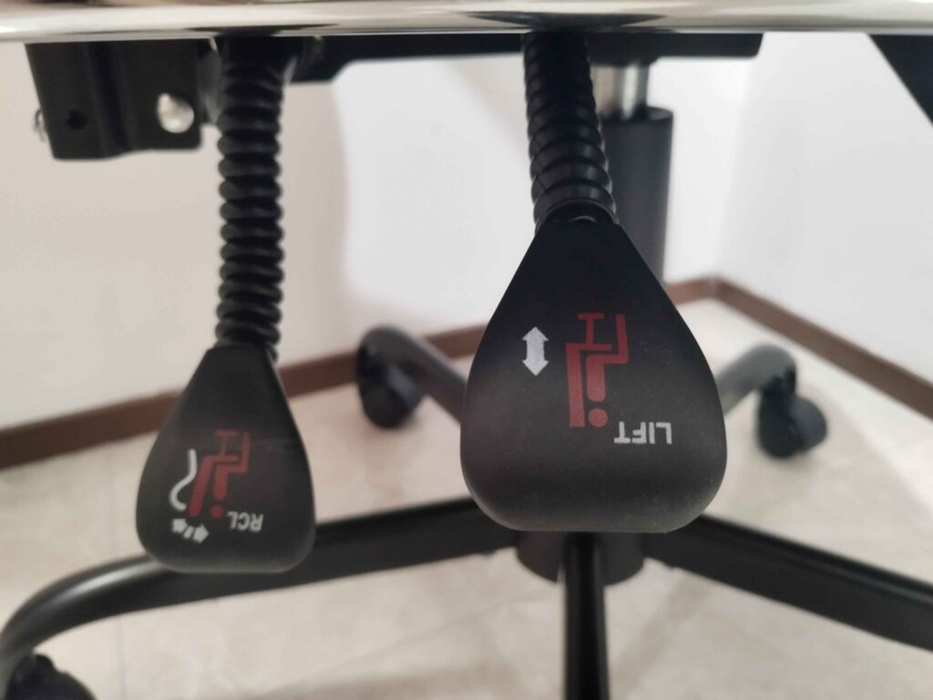 You’ll have two levers to play with. The LIFT level adjusts the height which has a decent range of options. I’m quite tall at 6ft 3, but I had no problem adjusting the seat to match my monitor.