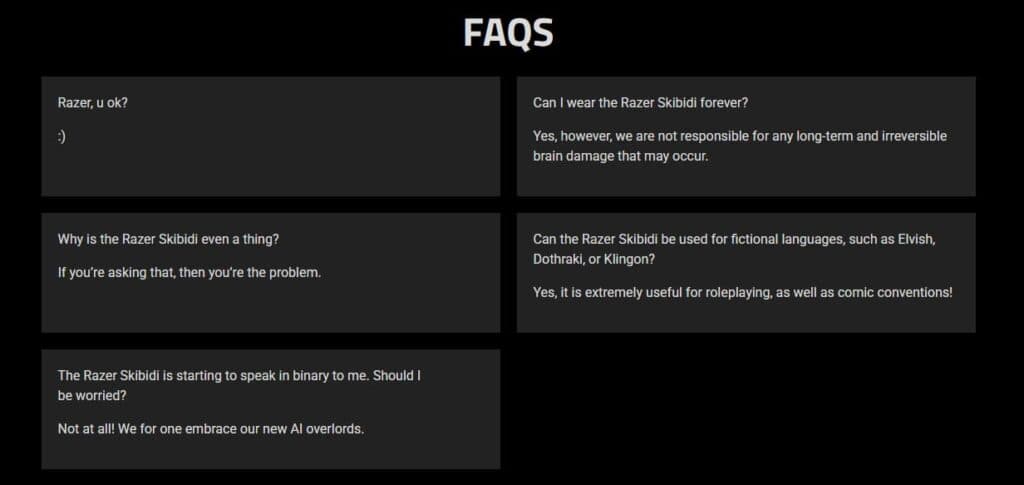 Definitely check out the FAQ and you'll understand just how impactful the Razer Skibidi will be once it goes live for consumers.