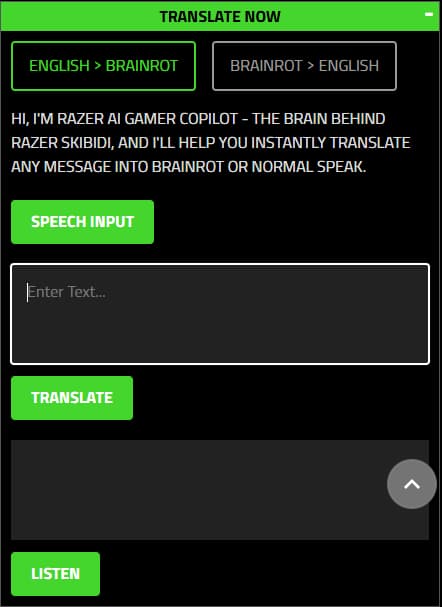 Go to the Razer Skibidi page on the Razer website. There, you can actually test out how the technology works. There is a Translate Now bar at the bottom right of the page. Click on that to open up the full translation window.