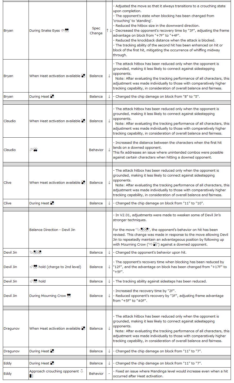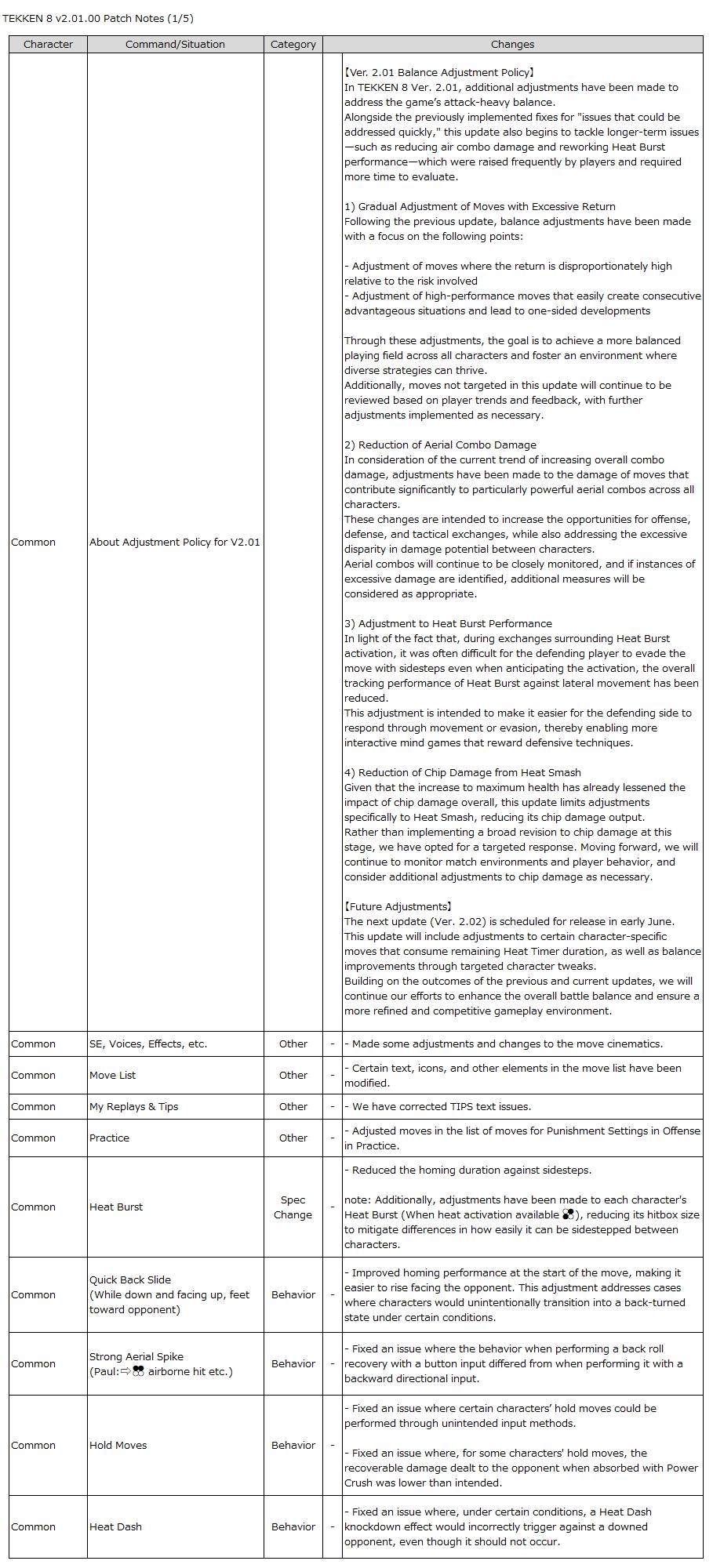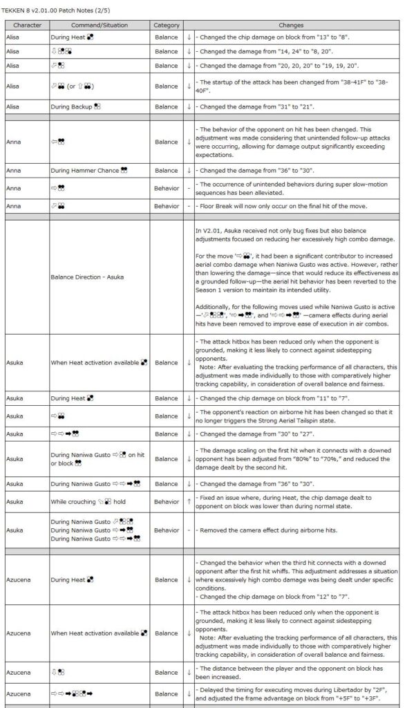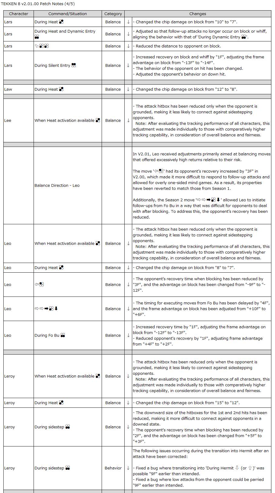 - TEKKEN 8 Patch Notes 2.01 are on the official website here and in the images below.