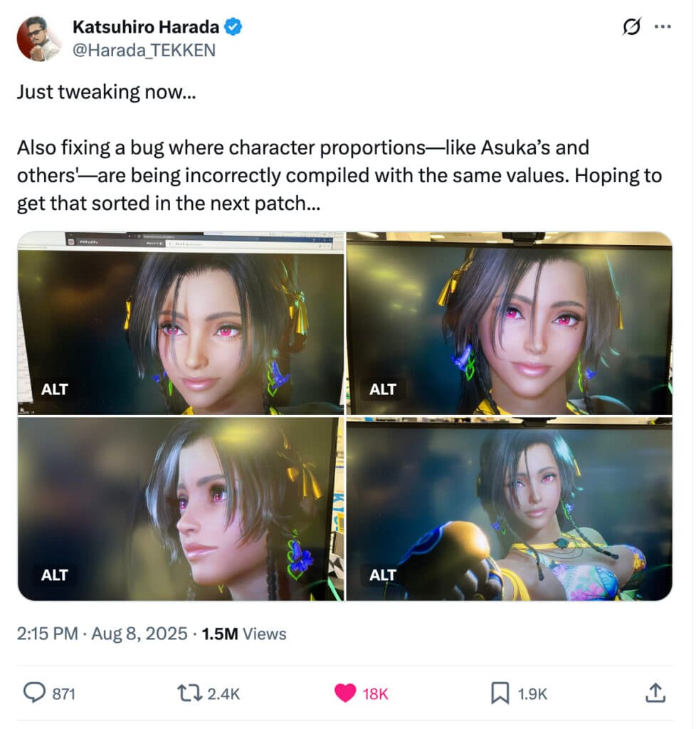 Tekken 8 Game Director Katsuhiro Harada took to X/Twitter shortly after her appearance became the topic of heated discussion, to explain how extensive the team's research was.