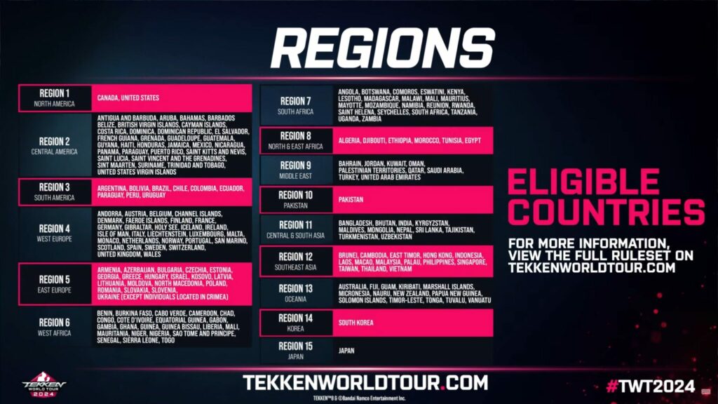 Bandai Namco have revealed the regions for the upcoming TEKKEN World Tour 2024. Your region must be your country of residence.