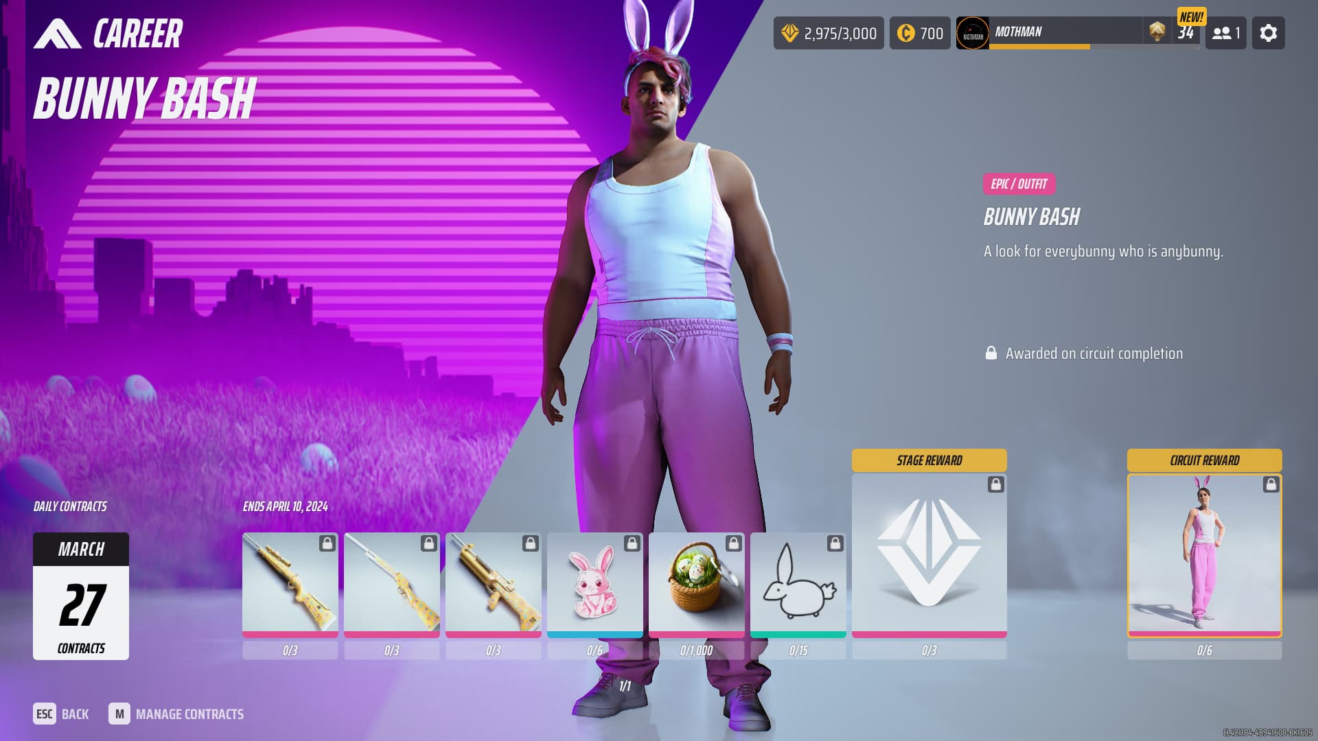 - Complete all contracts in the Circuit – Bunny Bash Outfit