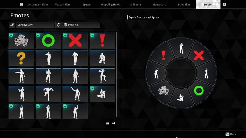 - Click the Emote or Spray you wish to equip