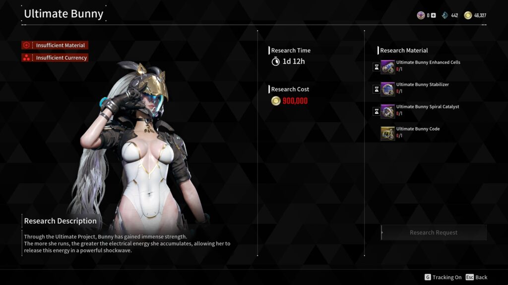 There are four components you need to Research and unlock Ultimate Bunny in The First Descendant, each require different materials to complete them: