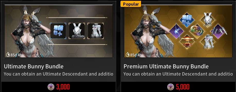The Ultimate Bunny Bundle will cost you 3,000 Caliber in-game, which is the equivalent to $60 USD. You also have a choice of purchasing the Premium Ultimate Bunny Bundle for 5,000 Caliber, which works out at around $100 USD. These prices are the same for all Ultimate Descendant Bundles.