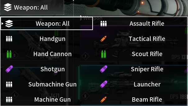 - Special Rounds (Orange): Tactical Rifles, Beam Rifles