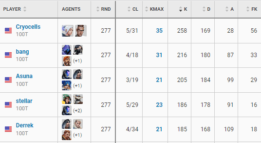 Cryocells managed to obtain the highest maximum kills in a game at 35, along with the highest first kill rating at 56. During the Champion Tour, Cryocells was in another team, XSET, and scored a maximum of 35 kills within a game with 50 first kills. This pickup is clearly a power move by 100 Thieves, who have added an absolutely insane fragger to their roster.