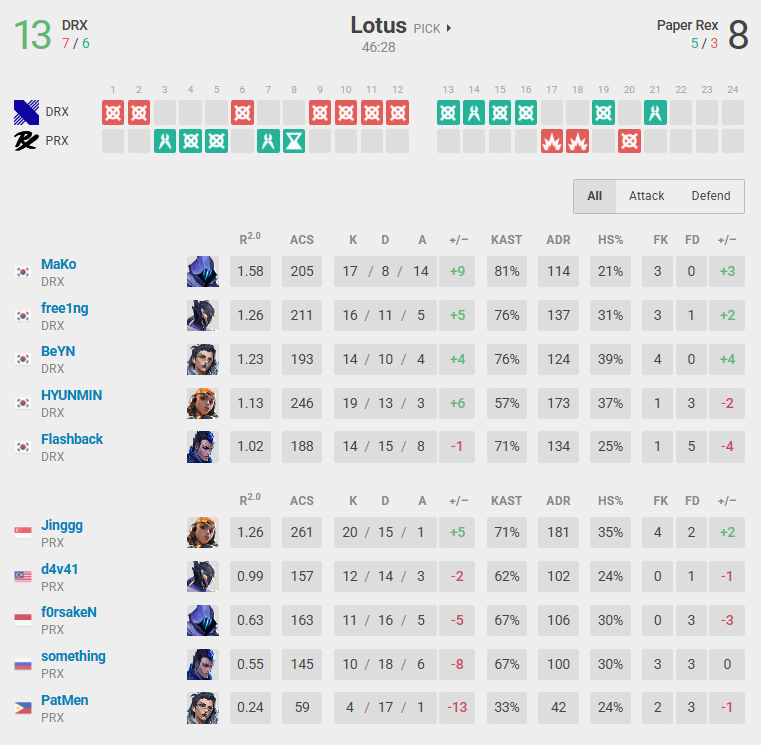 | DRX vs PRX | DRX 15 – 13 PRX | DRX 13 – 8 PRX | – |