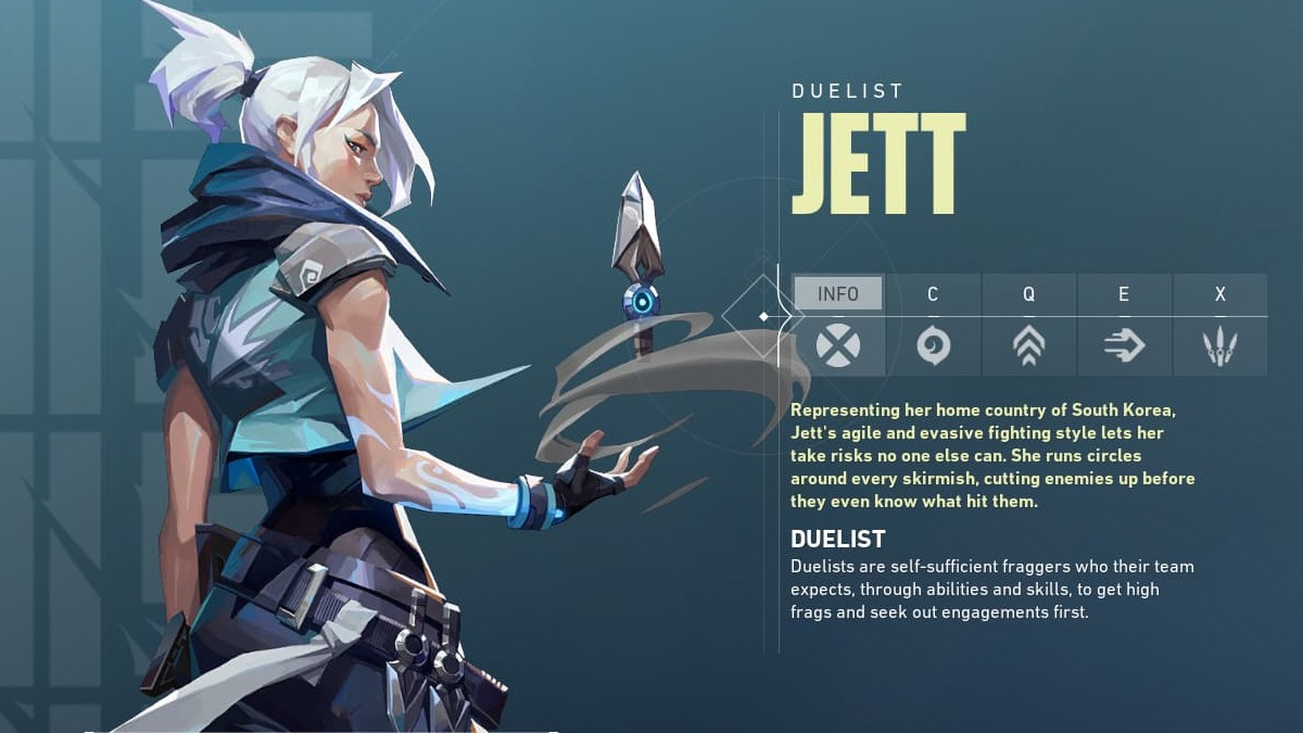 Jett is a fragger’s dream. Everything at her disposal helps her rack up kills, which is her way of supporting the team. If you’re looking for a Duelist, you can’t go wrong here. She’s pretty viable in every situation, as long as you can land your shots.