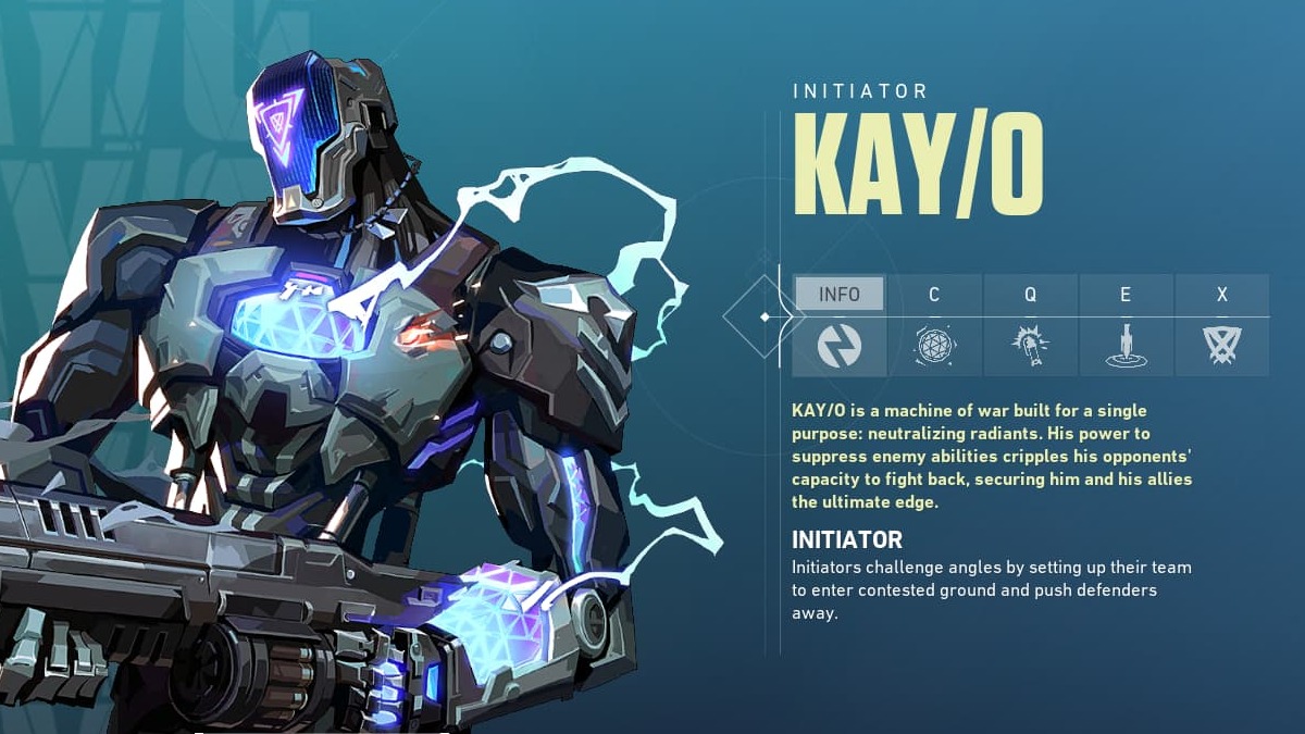The enigmatic training bot has come to life. KAY/O is a suppressive initiator that can ignite pushes or keep the other team from advancing. He’s got a damage-inducing pulse grenade, a flash to clear with, and the option to temporarily remove enemy abilities.