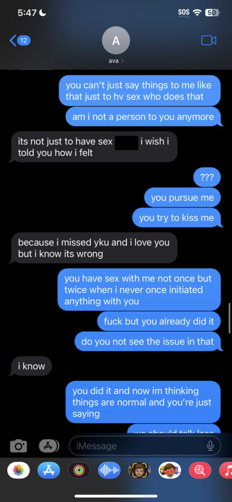 The events outlined in this doc happened on January 3, 2024. By this time, flor was 17 years old. The telling of events involved Brick and flor, referred to as “Ava,” and how they had continued sexual relations despite the lack of consent from Brick. The doc also contained screenshots of messages from Brick to karie about flor’s actions.