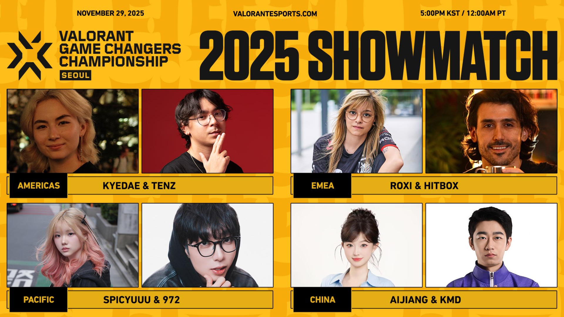 The VALORANT Game Changers Championship 2025 is approaching its finale, but before that, fans can enjoy a special showmatch on Nov. 29 featuring popular talent from every region. Kyedae “Kyedae” Shymko and Tyson “TenZ” Ngo will represent North America.