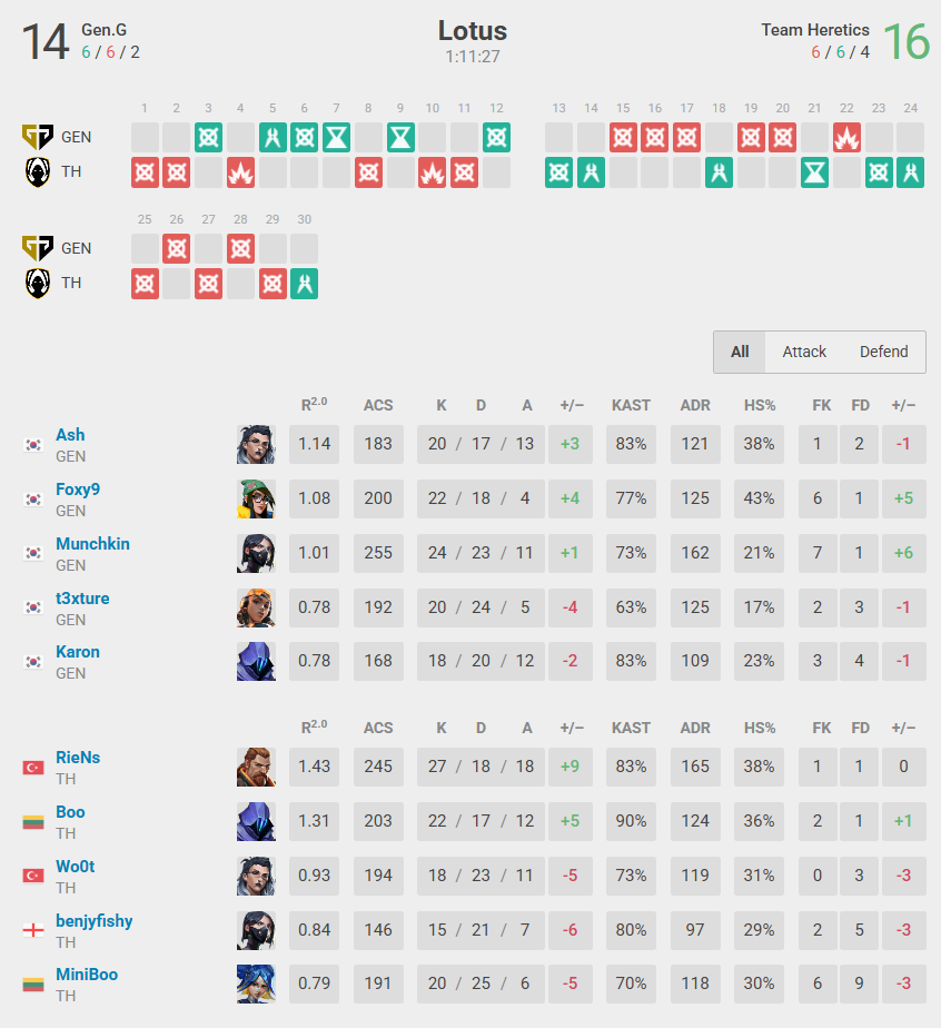 | 2 | Haven (Gen.G map pick) | GEN 13 – 8 TH |