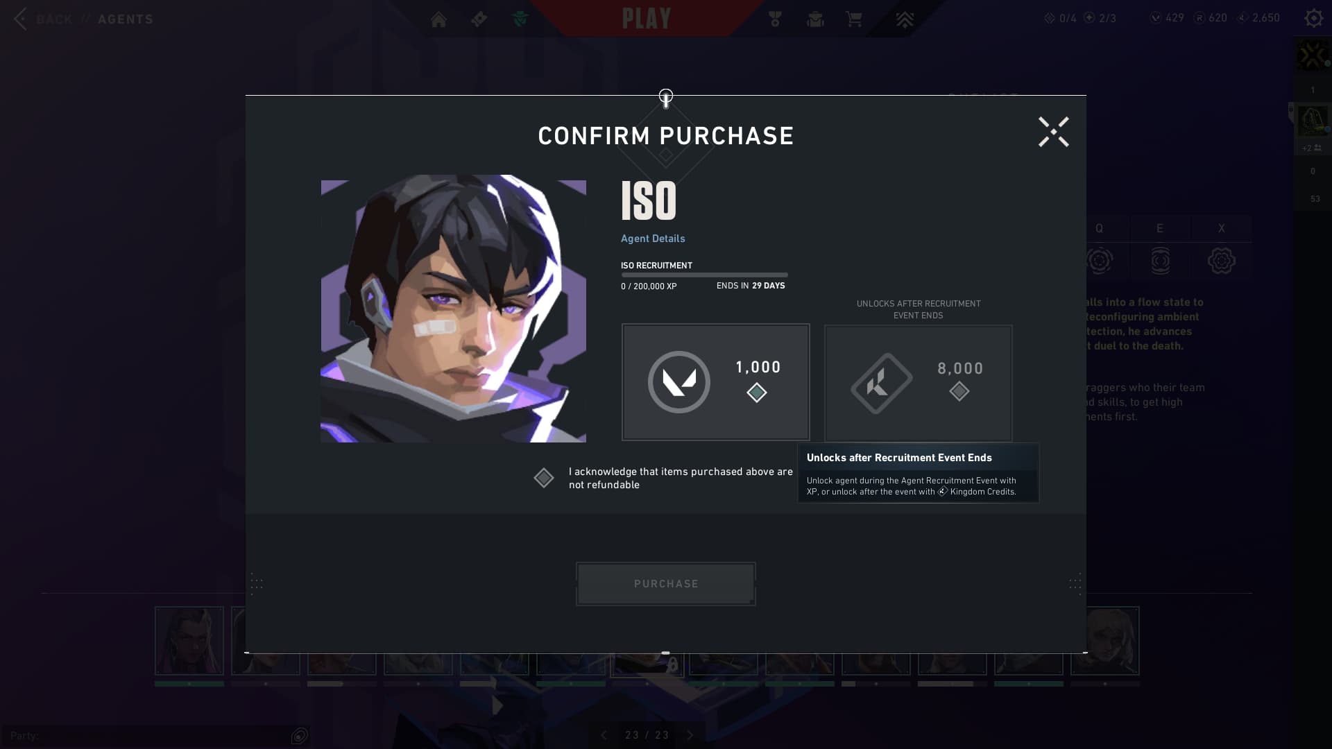 - Purchase the Agent with 1,000 VALORANT Points