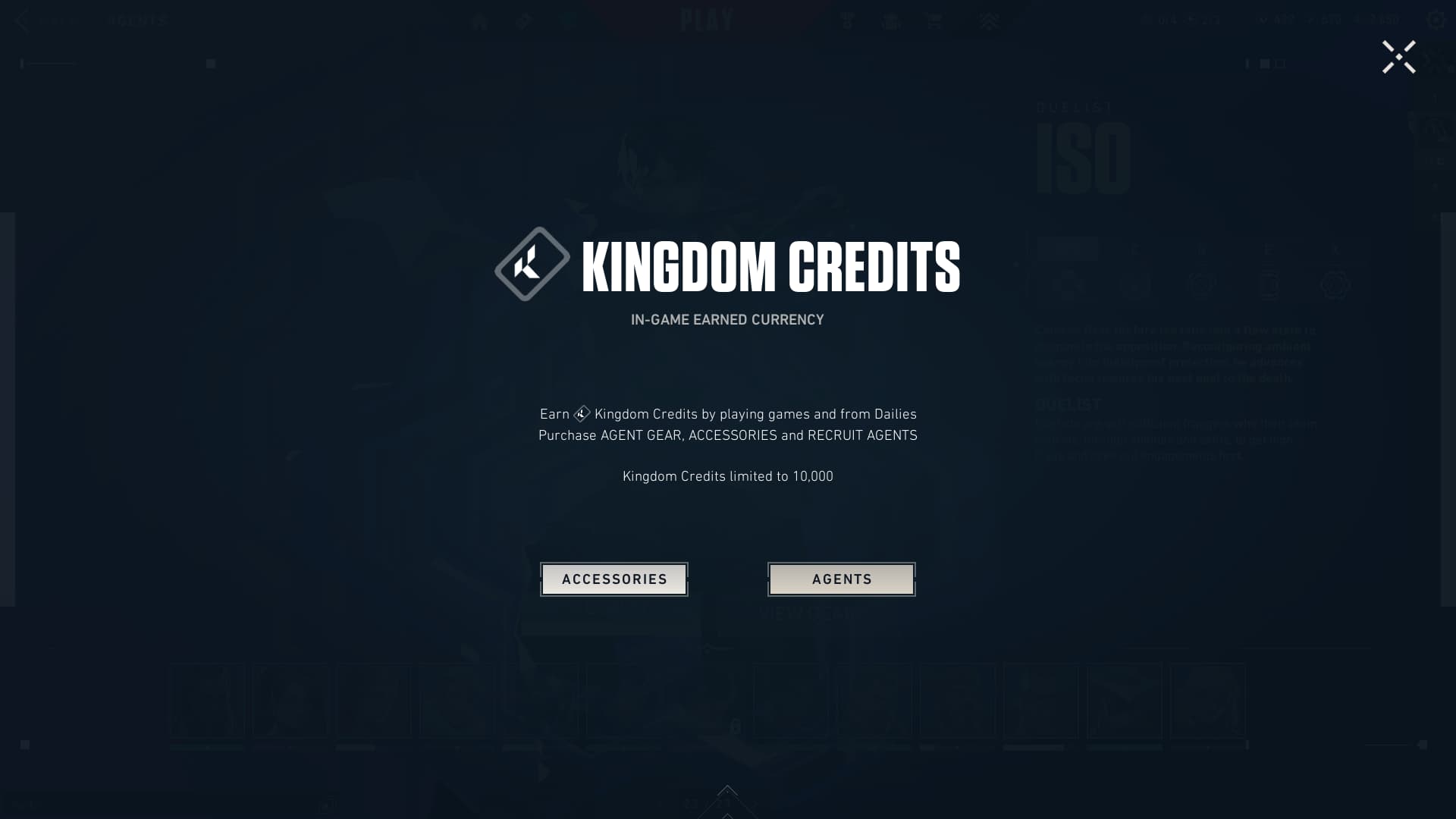 - Spend 8,000 Kingdom Credits to unlock the Agent