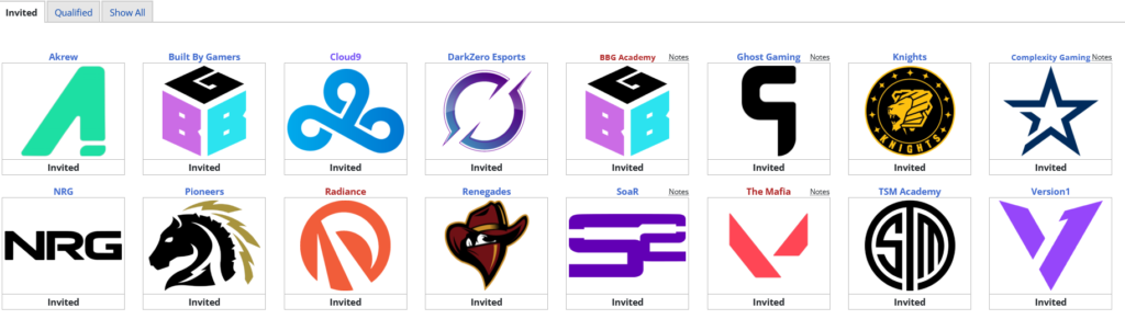 Thirty-two North American sides will be competing in the tournament. Four teams from VLR.ggs’s top ten power ranked rosters will headline this event. The highest of those teams is Cloud9, which is one of the best sides in the world at the moment. Alongside them will be solid sides such as Akrew, NRG and Version1.
