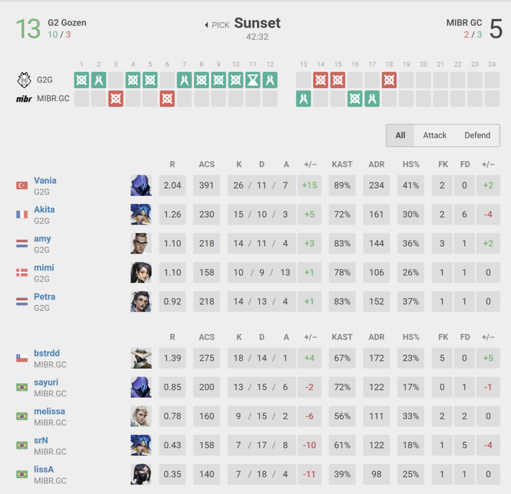 Sunset was G2’s pick, and it showed. They dominated MIBR here, with a 10-2 half and closing it out quick, 13-5.
