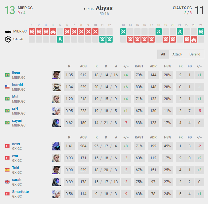 The second half was a complete turnaround, almost like an entirely different game. GIANTX came out stronger, mounting a comeback fueled by the firepower of two initiators and two controllers on the attacking side. From 3-9, GIANTX nearly forced the game into overtime, but MIBR regained its strength when it mattered most.