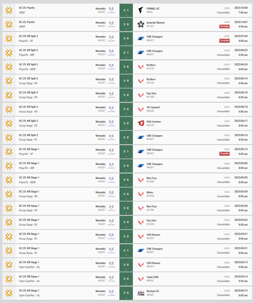 In the GC Korea Split 2, the team dominated their matches and qualified for the Game Changers Pacific, the highest achievement before the international stage. Despite their impressive performance in the Korean tournament, Ninetails knew that success in the Pacific region would be much more challenging, as the stakes were significantly higher. However, they were determined to showcase their exceptional talent.