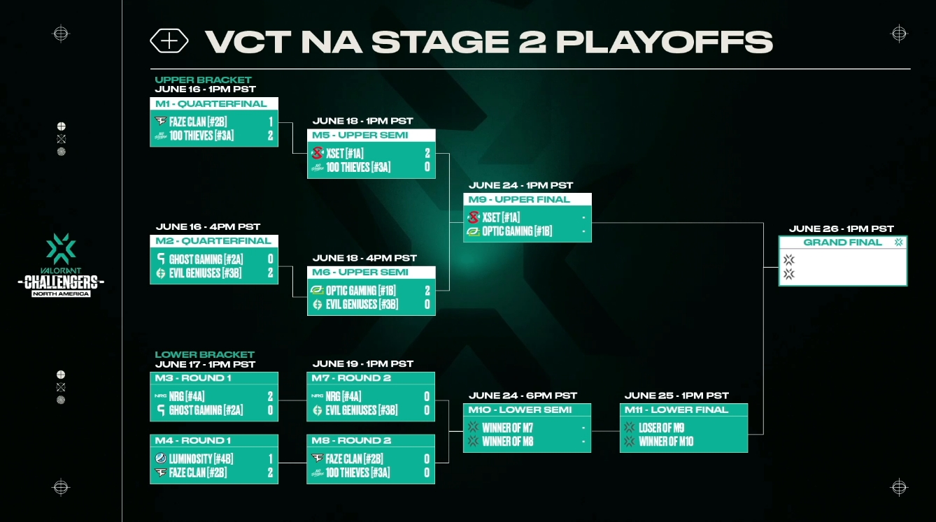NRG will face scrim partners FaZe Clan in the lower semifinals on Friday, June 24th at 6PST. Stay tuned to esports.gg for the latest Valorant news and updates.
