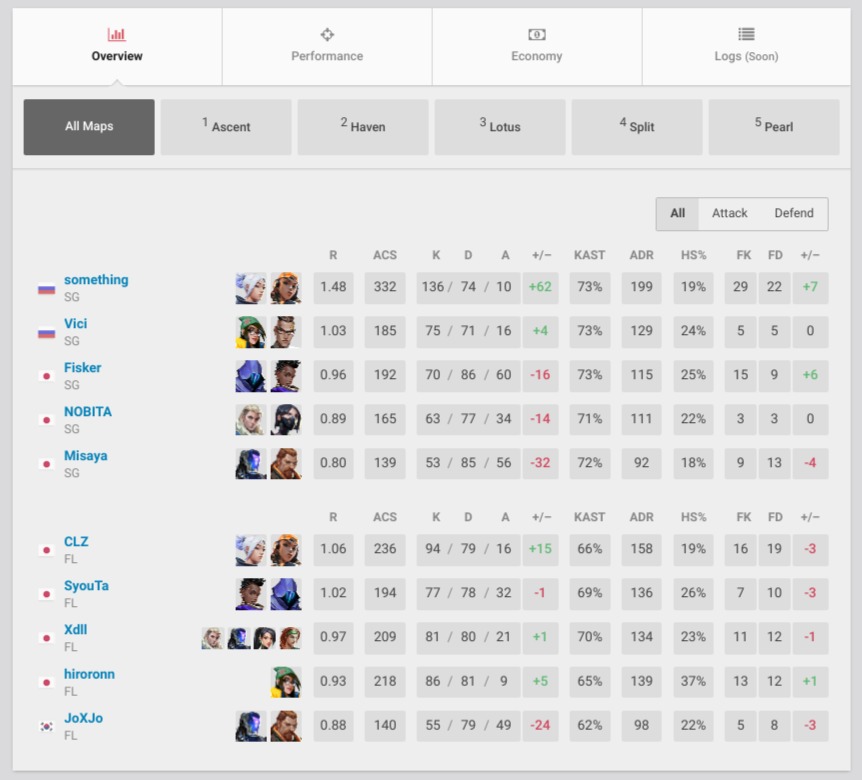 During VCL Japan Split 1, something played for Sengoku Gaming. Although his team was knocked out in the second round of the lower bracket and placed fourth overall, something’s individual performances stood out. In a BO5 match against FENNEL, who eventually won the Split, something achieved an impressive 332 ACS across five maps and had a +62 kill differential throughout the series.