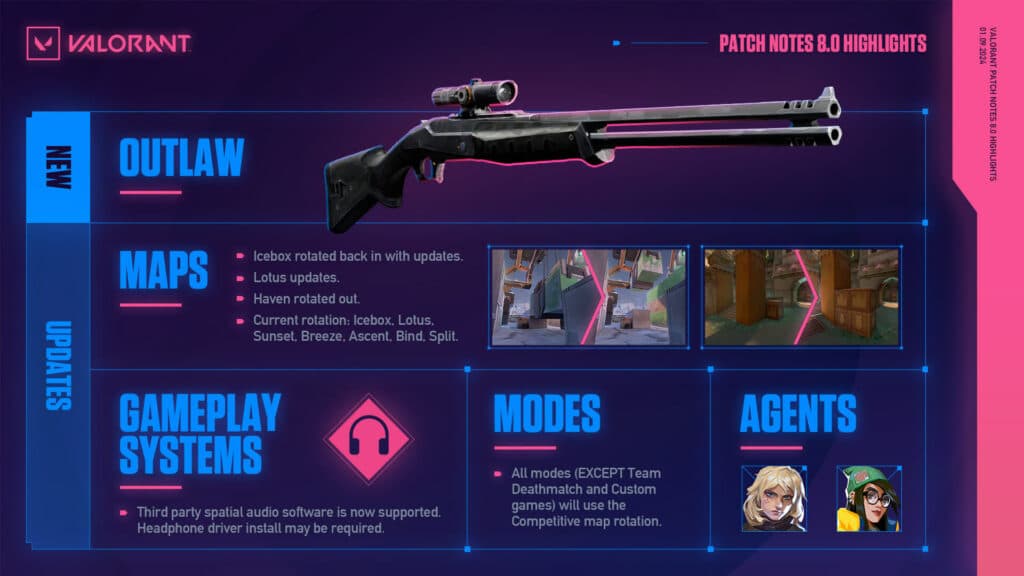 VALORANT Episode 8 is here and Riot Games have released a new wave of patch notes ahead of the update. Between some major agent changes as well as the introduction of the new Outlaw weapon, there is plenty in store for VALORANT players in the 8.0 update. So, without further ado, let's jump right into the VALORANT 8.0 patch notes.