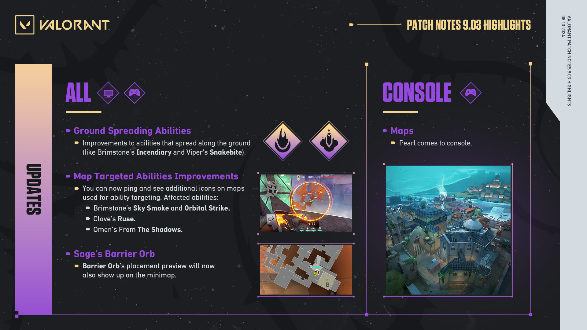 The VALORANT Patch 9.03 update brings Pearl to console players, and ships some quality-of-life improvements to mollies and pings.