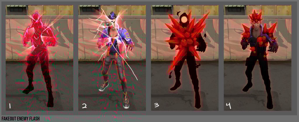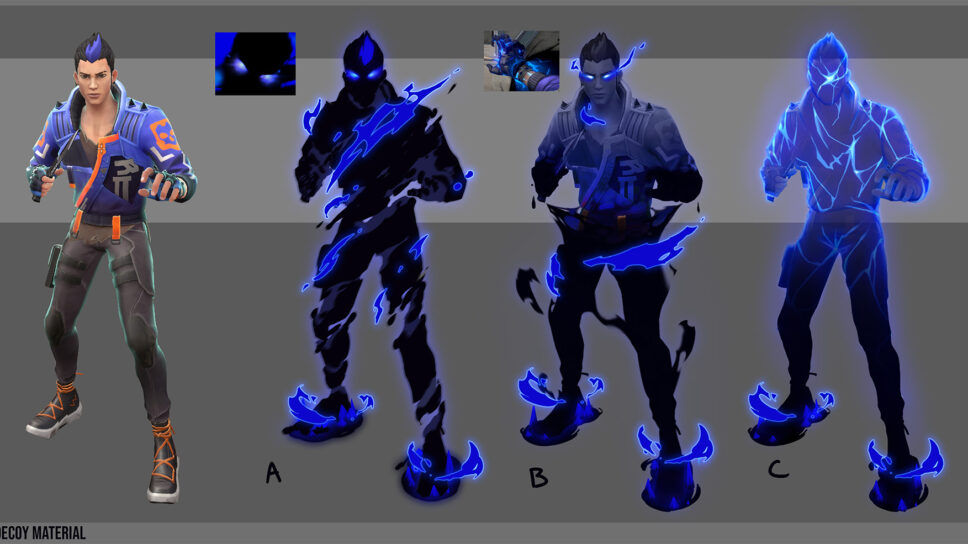 “During playtests we found that the copy was effective at disrupting an enemies moment-to-moment gameplay—which is awesome—but not when your team gets confused. Below are some of the early explorations for how to visualize the ally Yoru copy.”