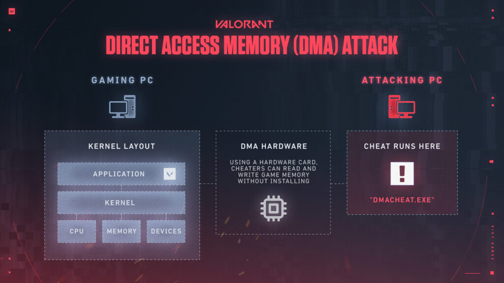 Riot says DMA Attacks (which require hardware devices to work outside of VALORANT’s Vanguard) are more prevalent in higher ranks. The developers are taking extra steps to enforce proper security measures.