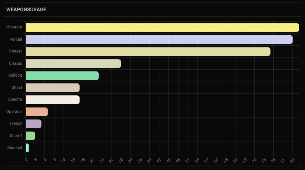 In the six Challenger League games, 36% of the eco rounds after losing the pistol, are being filled with Stinger buys. Outside of the Phantom and Vandal, the Stinger has shot up to the third most used gun, according to THESPIKE.GG. With 315 Stinger buys, the gun has usurped the Spectre as the defacto second-round buy. Efficient from short, mid and long range.