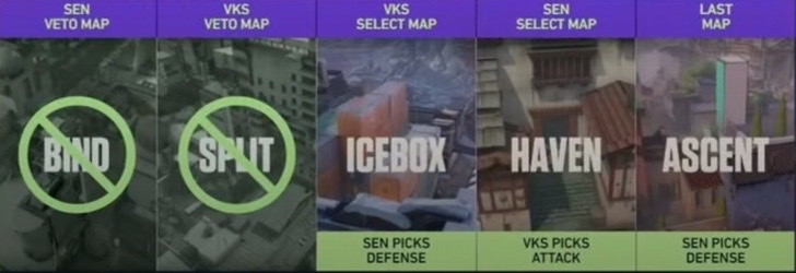 Nothing seems to change with the pick bans as Bind and Split do not make it to the match rotiation. Sentinels follow up on their pick and ban phase against Fnatic and ban Bind again. As for the Vikings, they follow Fnatic’s footsteps and ban Split. In fact, the pick-ban phase is a near copy of yesterday’s Fnatic matchup.