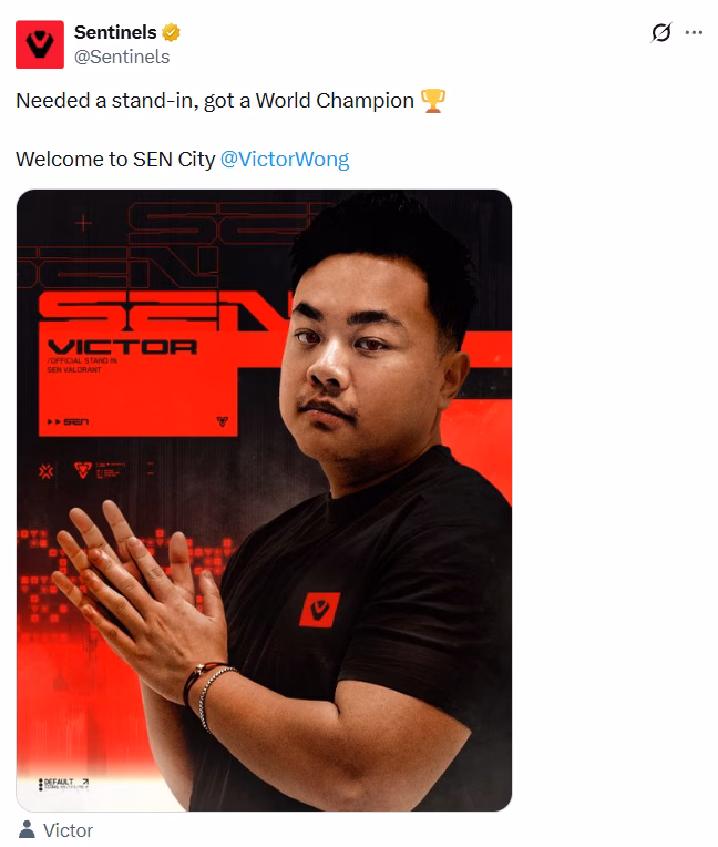 Sentinels announced Victor “Victor” Wong as the stand-in for Gurjiwan “Jerrwin” Gill one day from the beginning of the VCT Americas 2026: Stage 1. Jerrwin is currently facing visa issues, preventing him from being present at the start of the tournament.