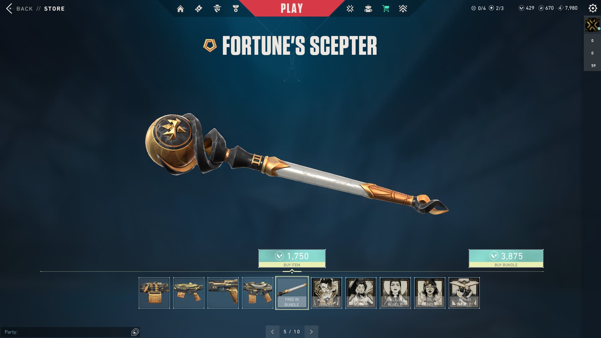 The VALORANT Fortune's Hand bundle comes with four weapon skins for some of your favorite guns, and a staff melee variant.