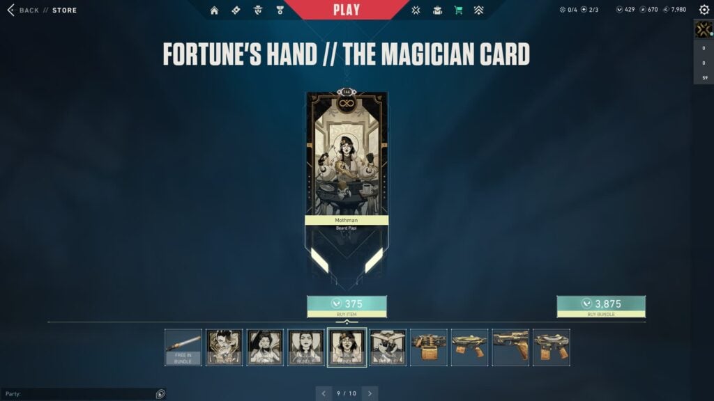 The VALORANT Fortune’s Hand bundle does not come with any upgrades, so it is not extremely costly. The entire bundle price is 3,875 VALORANT Points.
