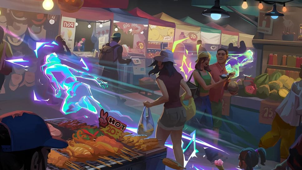Following that, Waylay our new VALORANT Agent, was seen zipping through a market. Look closely and two lightbulbs near the front are out. Waylay dashes through the area, but also sends another colored dash the opposite direction?