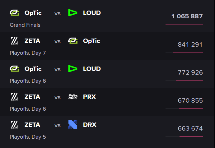 Interestingly, the previous match between OpTic and LOUD was the third-highest viewership match with 875,688 viewers tuning in for the upper bracket finals.