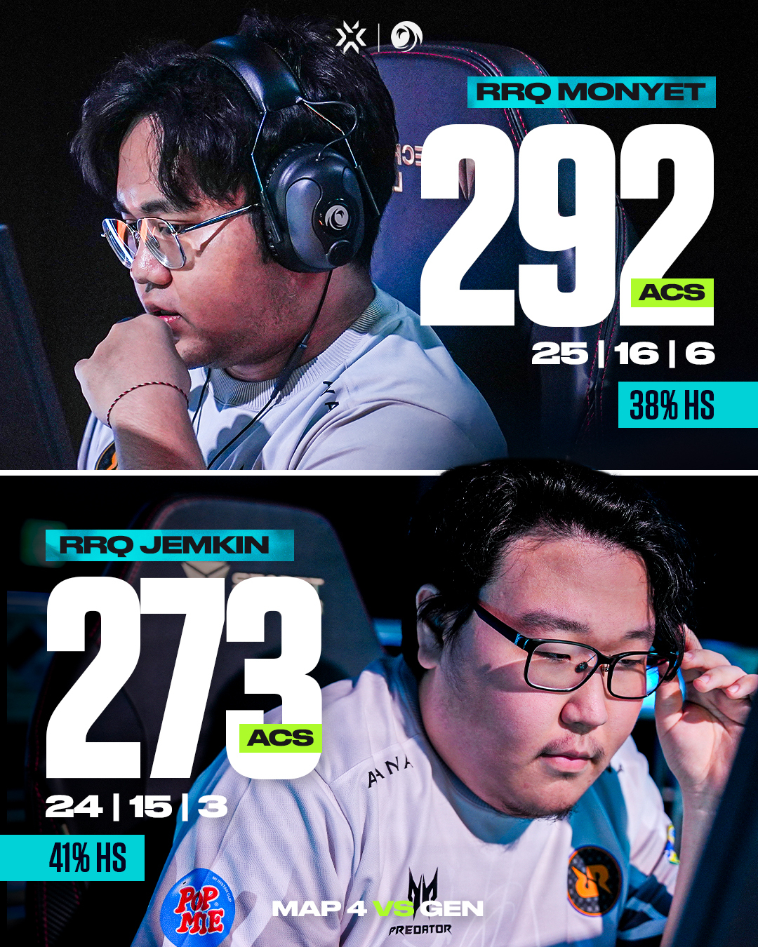 However, RRQ showed they had some aces up their sleeve when the next map, Ascent, rolled in. They took the first nine rounds on Ascent and ended the half up 10-2. Gen.G was never one to simply take punishment, though, and they replied with their own eight-round win streak in the following half. Ultimately, the map went to RRQ, but it was a close 13-11.