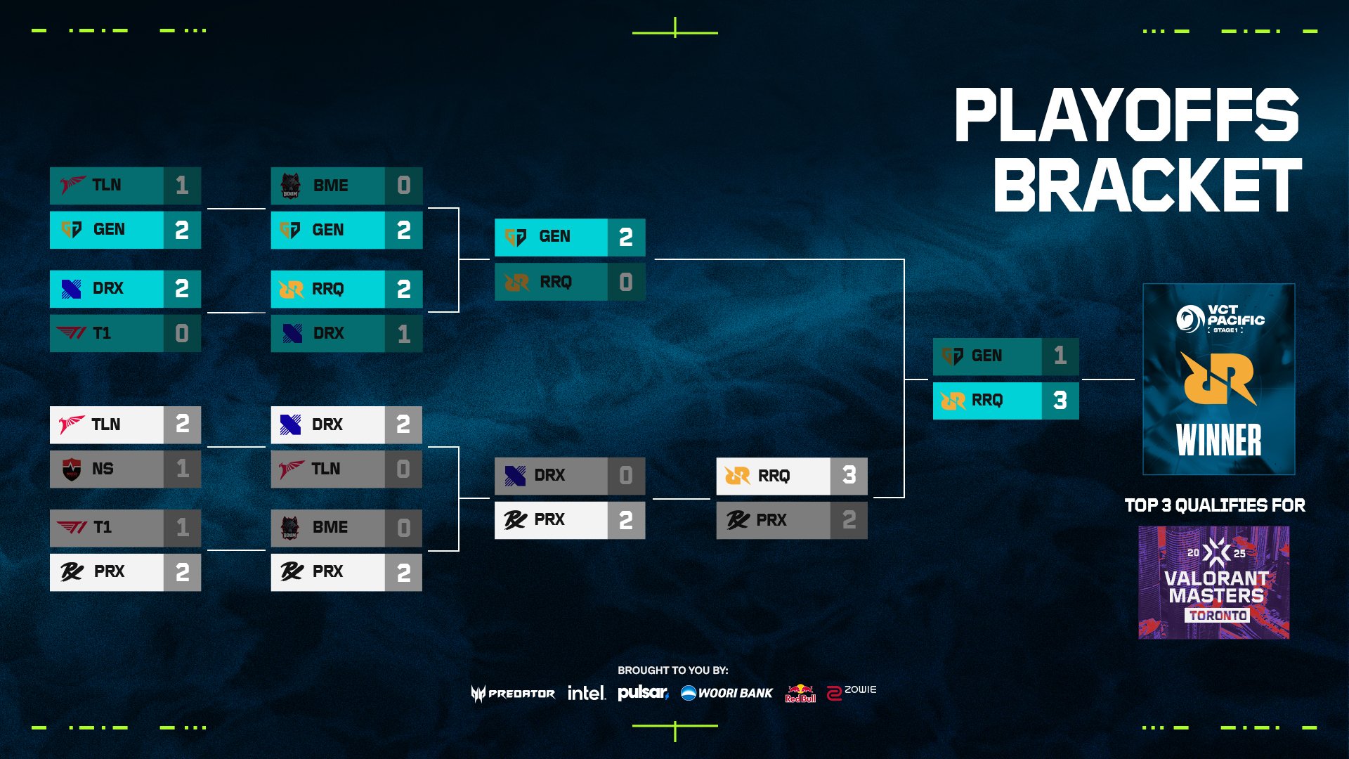 VCT Pacific 2025 Stage 1 champions Rex Regum Qeon, runners-up Gen.G Esports, and third-placer Paper Rex will represent the region in the upcoming Masters Toronto.