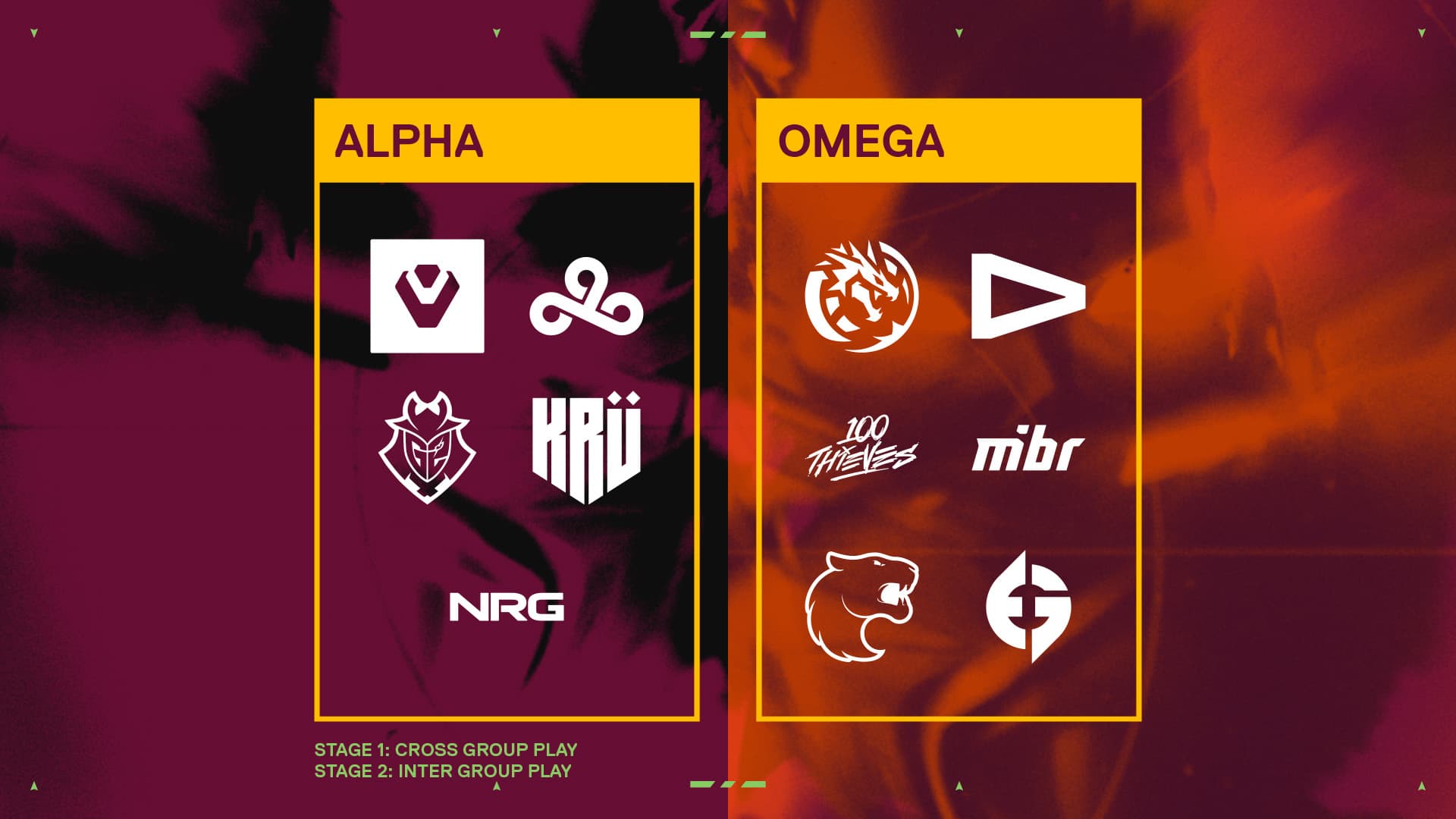 VCT Americas 2024 is split into two groups, Alpha and Omega. The latter consists of an extra team, due to an odd number of rosters with G2 Esports entering through Ascension.