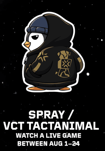 There are two different cosmetics that one can get during the VCT Champs 2024 event. The first one is a Spray - the VCT Tactanimal Spray. Getting this spray is fairly easy as players simply need to watch a live game between August 1 - 24, 2024.