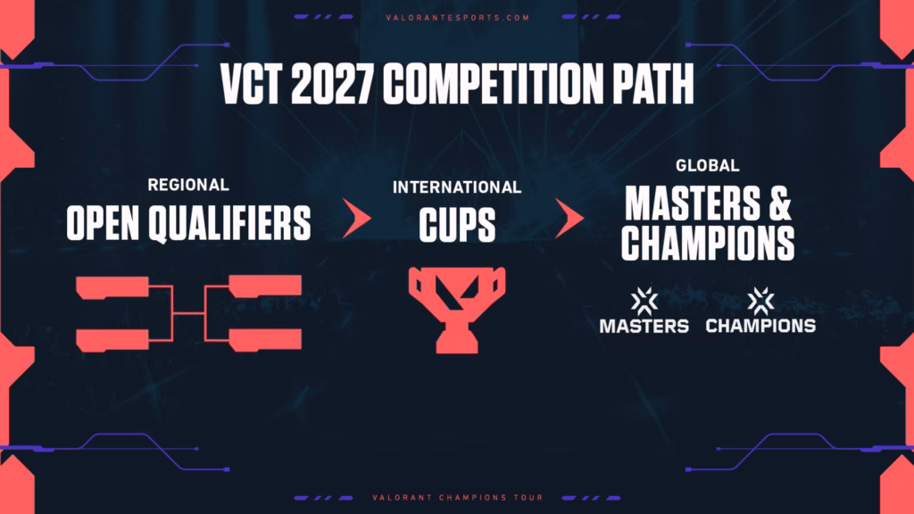 In 2027, the VCT will transition to a tournament-based model where every match carries significant weight. Riot Games will introduce regional open qualifiers that feed into regional tournaments, expanding the circuit to more locations while creating new opportunities for smaller teams to qualify for Masters and Champions.