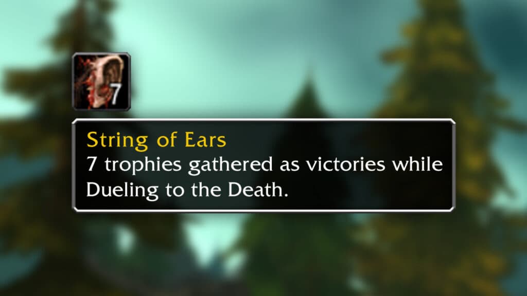 Just because PVP isn't automatic on a WoW Classic Hardcore Server doesn't mean it won't still happen. To that end, the new Duel to the Death mode is one part bragging rights and another bragging rights. You can challenge any person to a Duel to the Death, with the winner gaining a "String of Ears" buff that shows how many people you've slain.