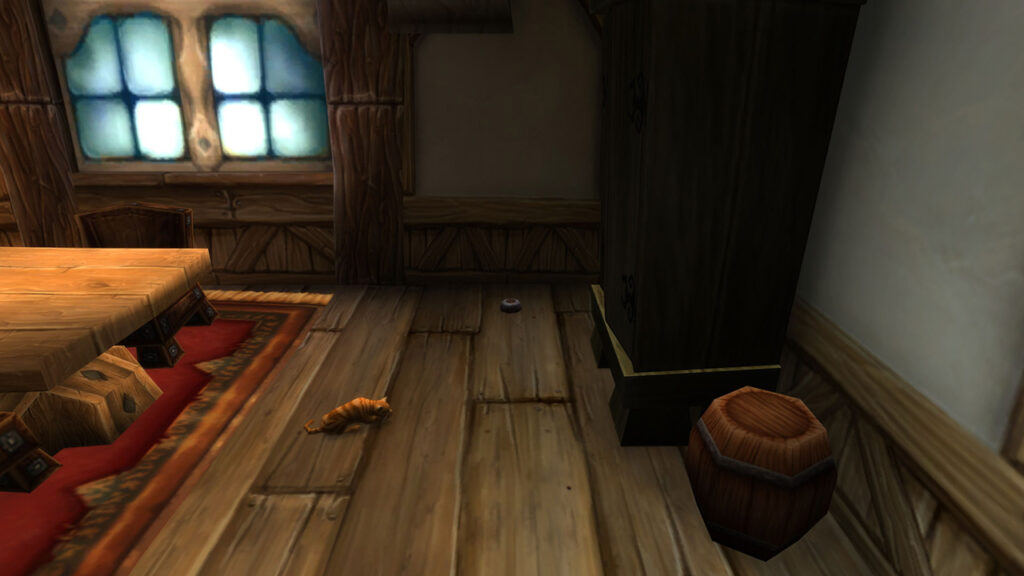 The next move is to find Donni Anthania, the Crazy Cat Lady, at 44.2 53.1 in Elwynn. Interact with the empty cat dish found in the house, pictured above. If you don’t see it then you didn’t interact with the NPC at Ashenvale.