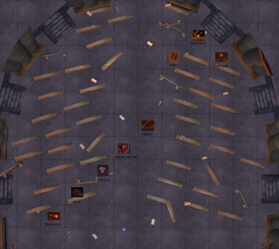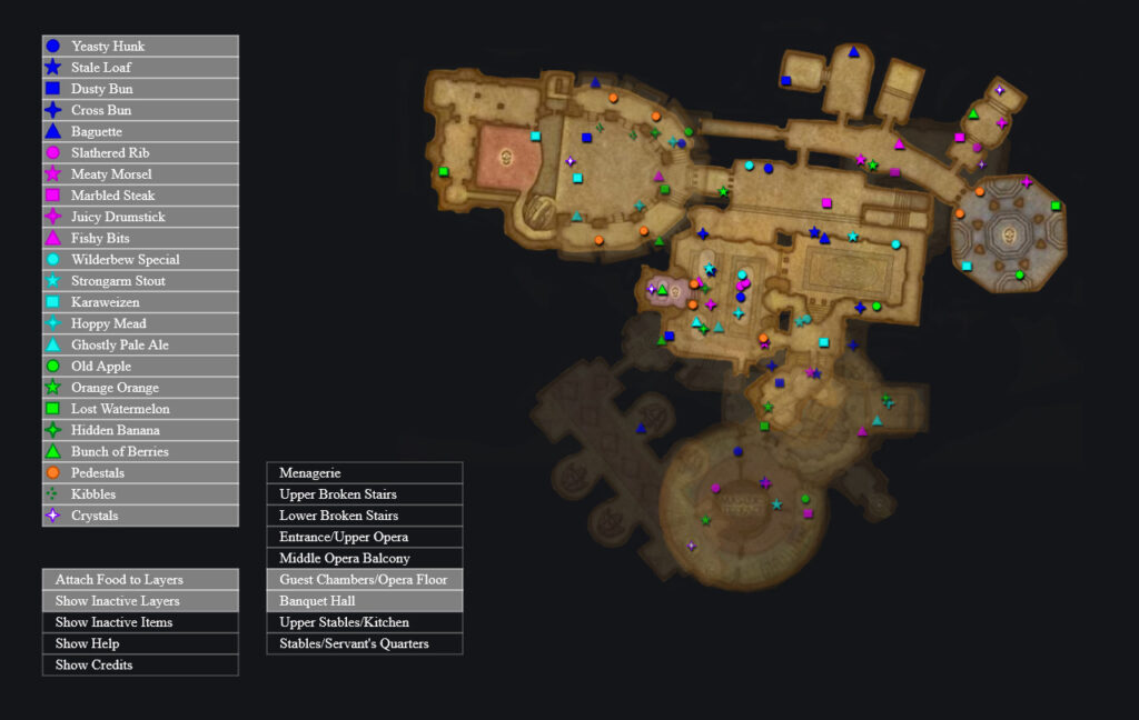 Gather these items then head to the Opera Hall and lay them on the tiles as seen below. Keep in mind: The food will only stay in your inventory for 5 minutes, so be quick about it. The best path for finding all the food needed is to start in Morose’s room, then head up to Maiden’s area. Don’t worry if you’re not fast enough. Once the food despawns it will go back to its original starting spot.