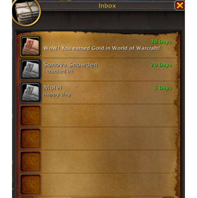A fun surprise! It’s so easy to earn gold in World of Warcraft. Now, open your new piece of postage when nobody is around and reap the rewards!
