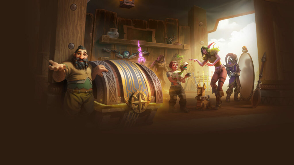 The newly added Trading Post feature is sort of like a free battle pass. Each month, players can complete tasks that will give Travel Points in their Traveler’s Log. As you hit Travel Point thresholds you earn rewards. Each month will have a special reward for collecting 1000 Travel Points. This month, the special reward is the Darkmoon Harlequin’s Bells ensemble.
