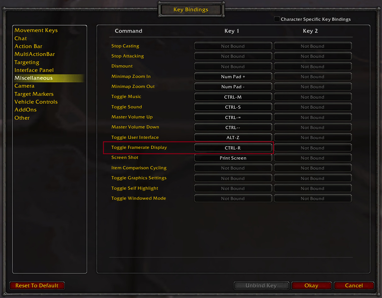 The keybind for checking your in-game FPS in World of Warcraft is left-CTRL+R. This keybind can be changed by going into the Options menu, navigating to Keybindings, and locating Toggle Framerate Display.